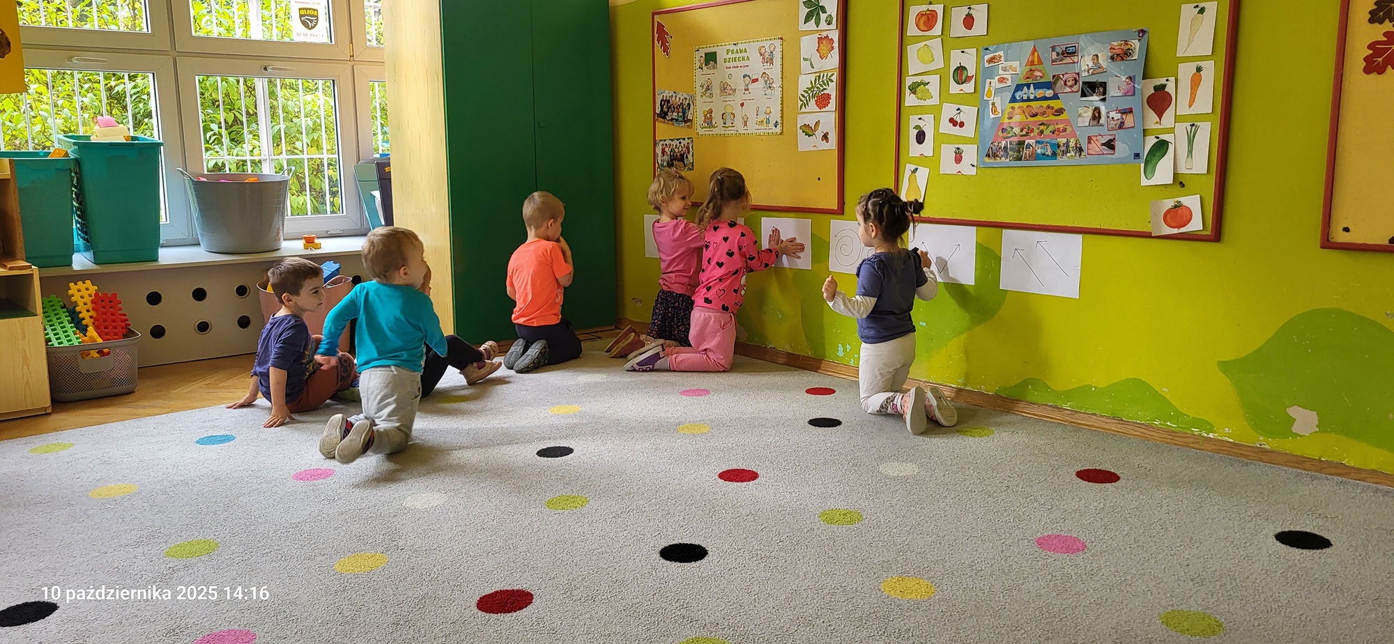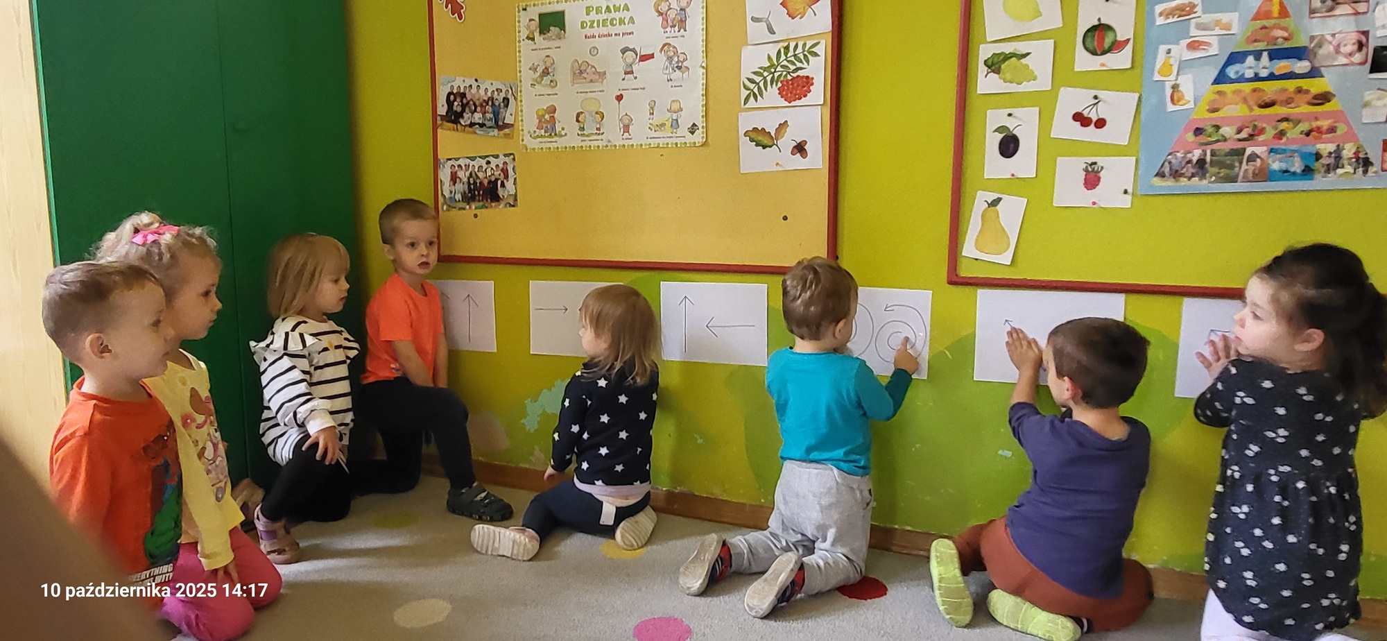 Dzisiaj Motylki uczestniczyły w ćwiczeniach odprężających polegających na odpowiednim odwzorowywaniu strzałek dłońmi. Przedszkolaki chętnie i w pełnym skupieniu wykonywały ćwiczenia