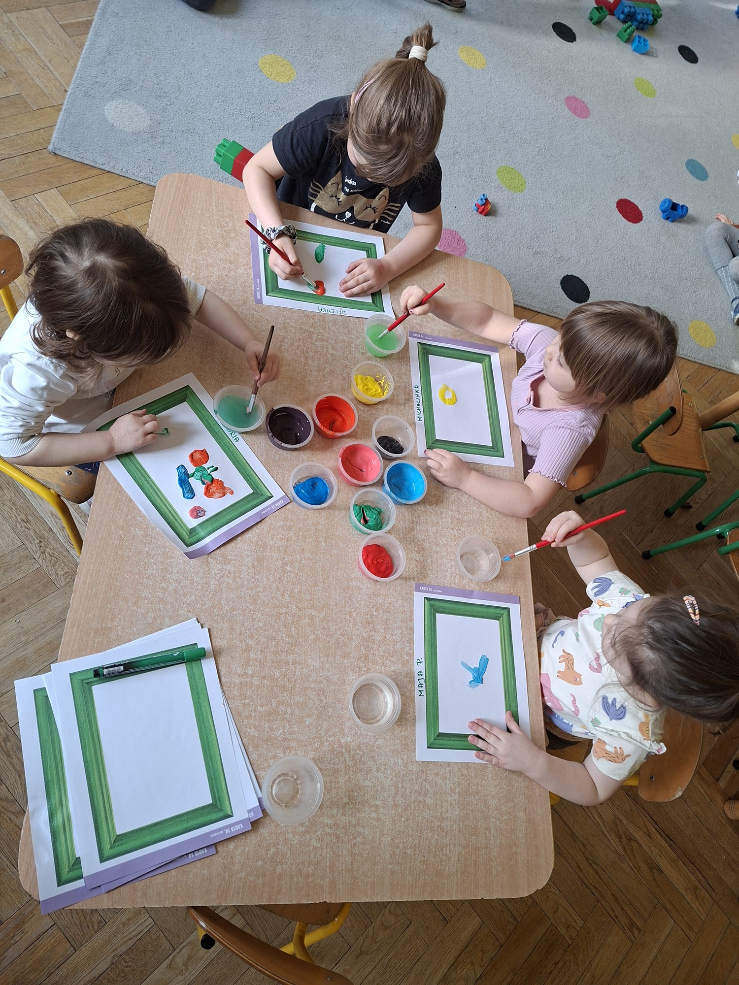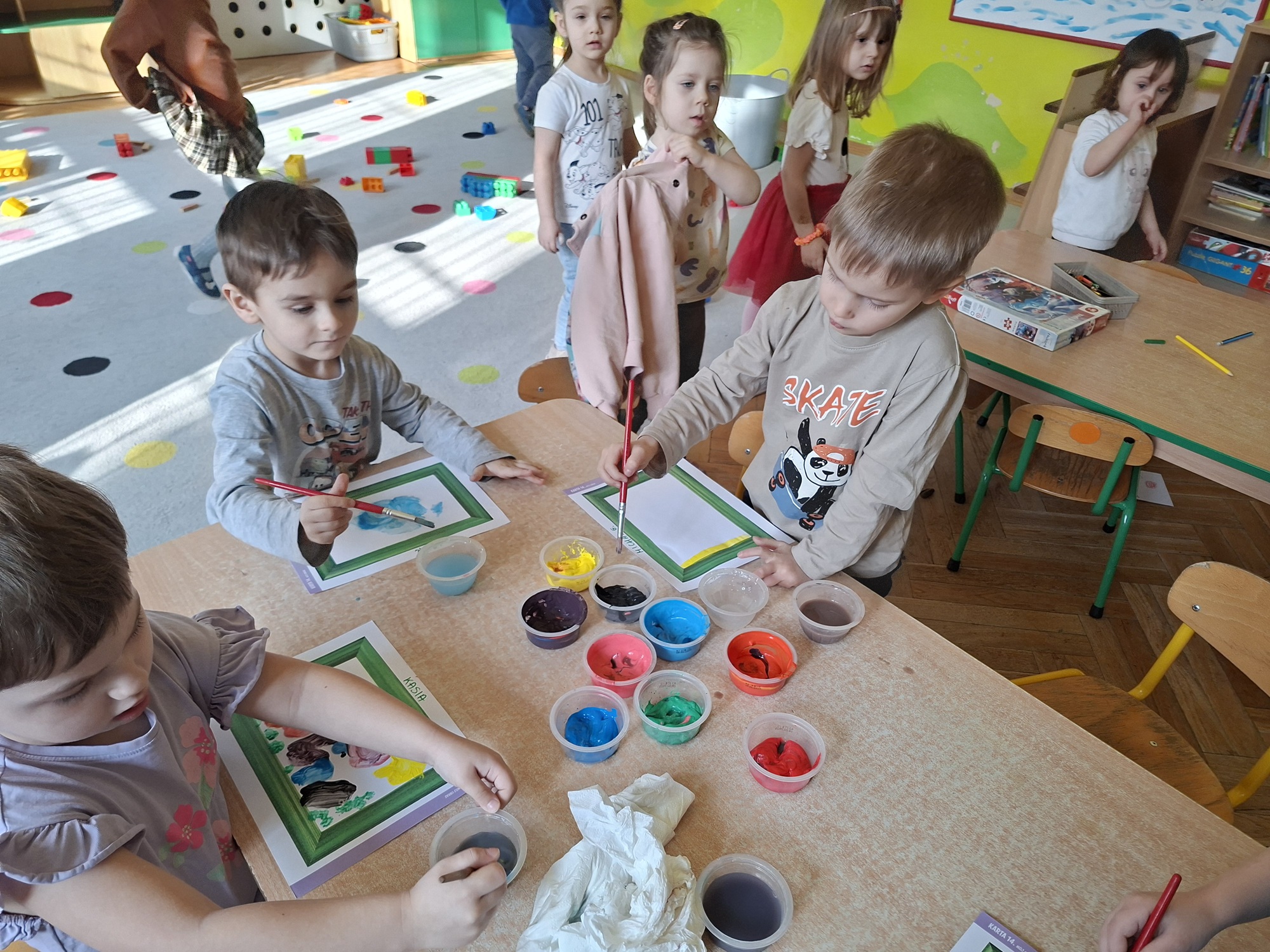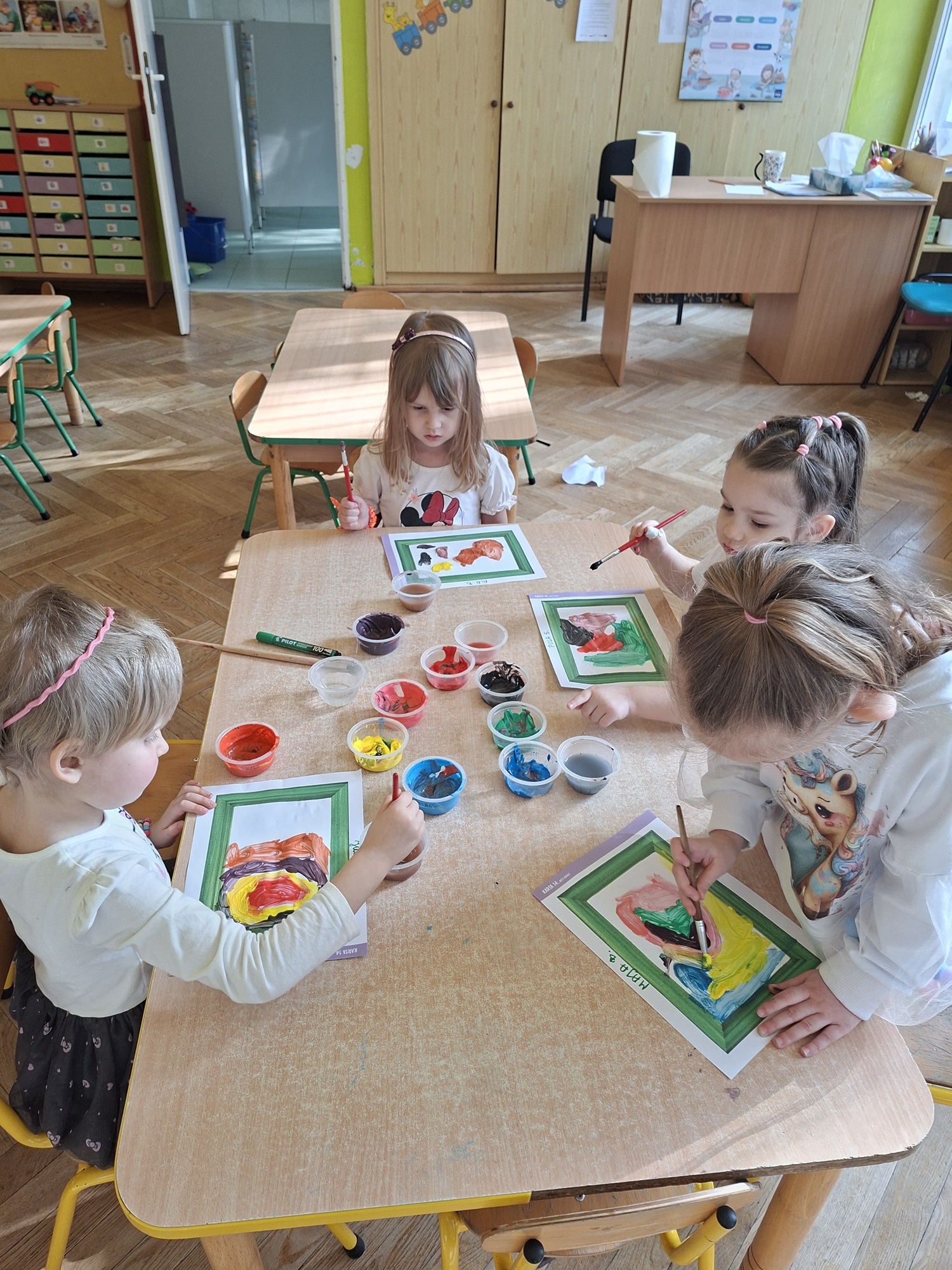 W tym tygodniu dzieci uczyły się czym jest sztuka i gdzie jej szukać. Przedszkolaki zamieniły się w małych artystów i stworzyły własne dzieła sztuki.