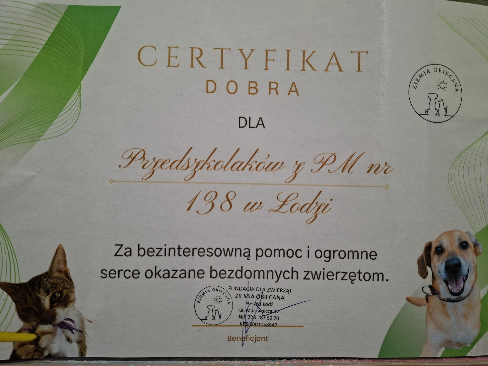 Podziękowania od Fundacji dla zwierząt Ziemia Obiecana