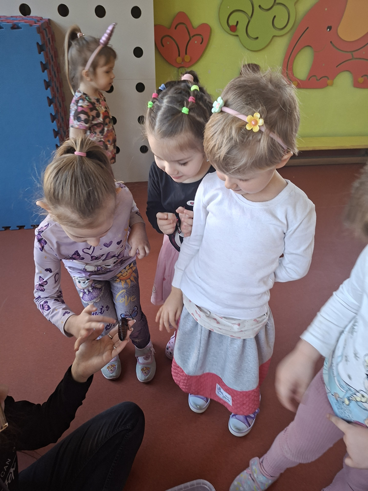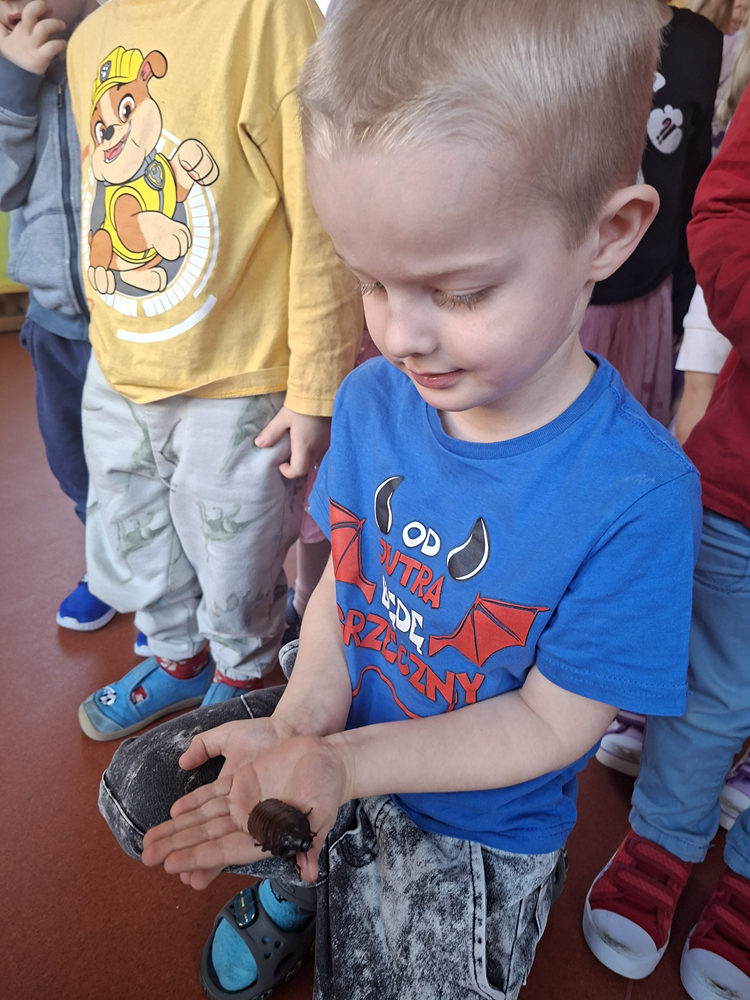Dziś w naszym przedszkolu mieliśmy nietypowych gości - odwiedziła nas modliszka i karaczany. Pomimo niewielkich rozmiarów owady bardzo się przedszkolakom podobały.