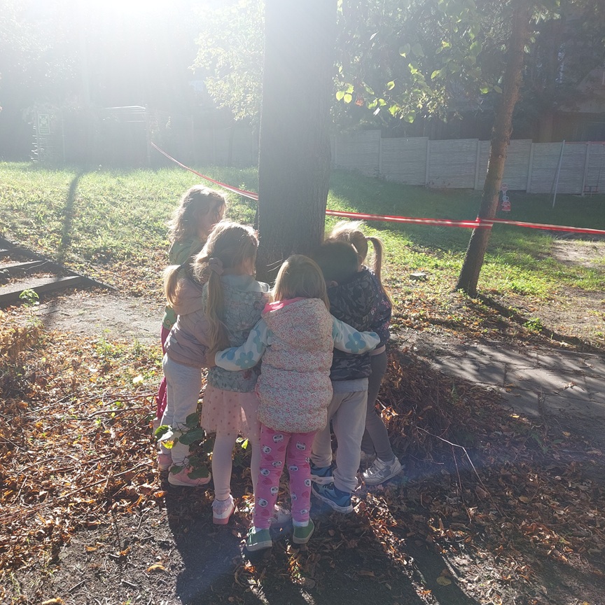 Przedszkolaki wzięły udział w 4. edycji ogólnopolskiej kampanii "Przytul się do drzewa" realizowanej w ramach projektu "Strażnicy Lasów".