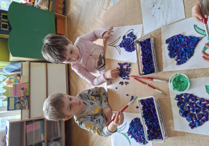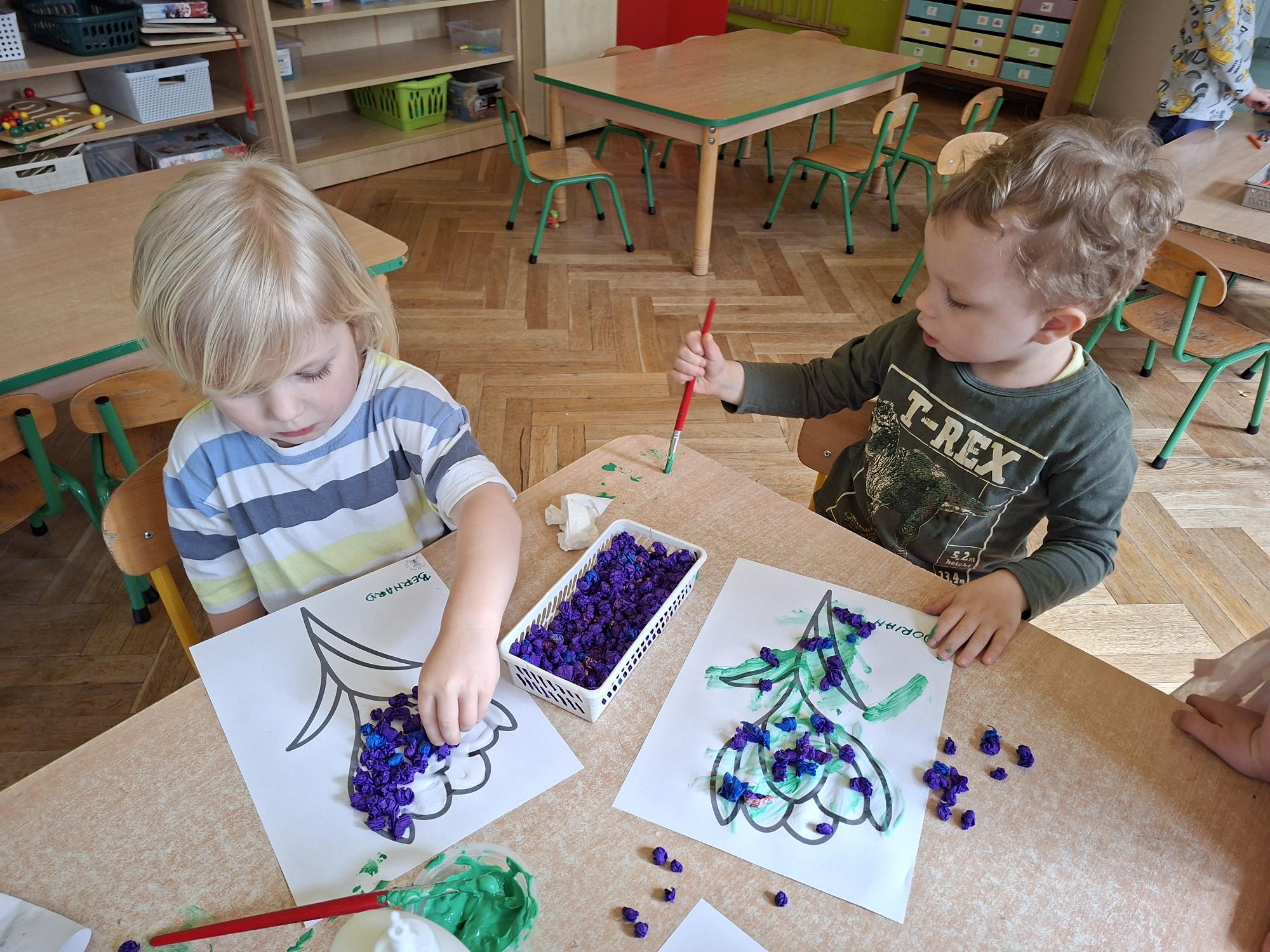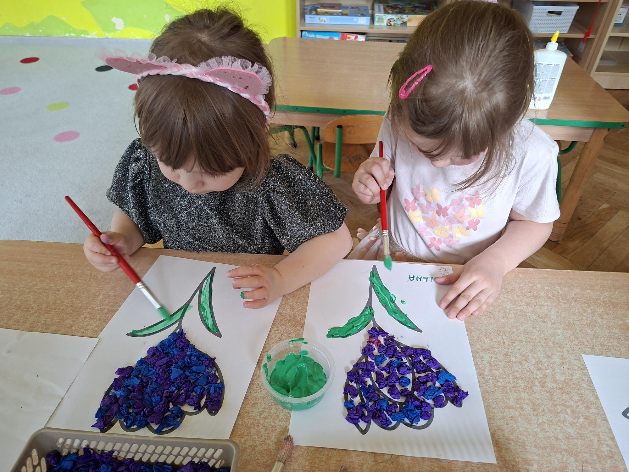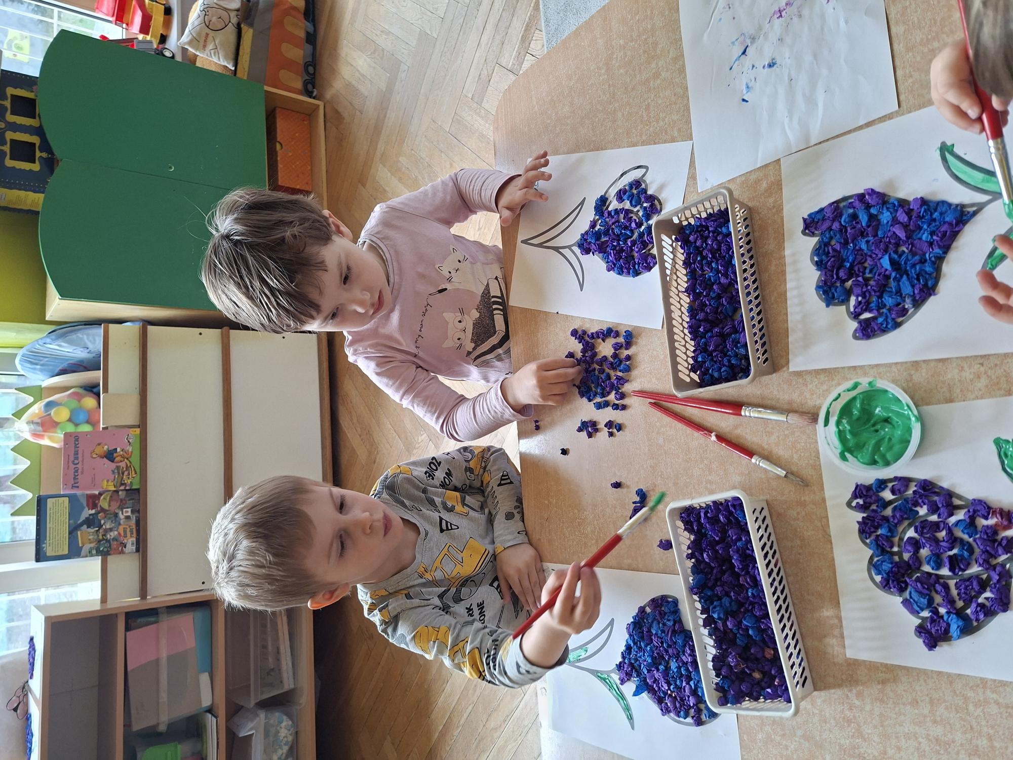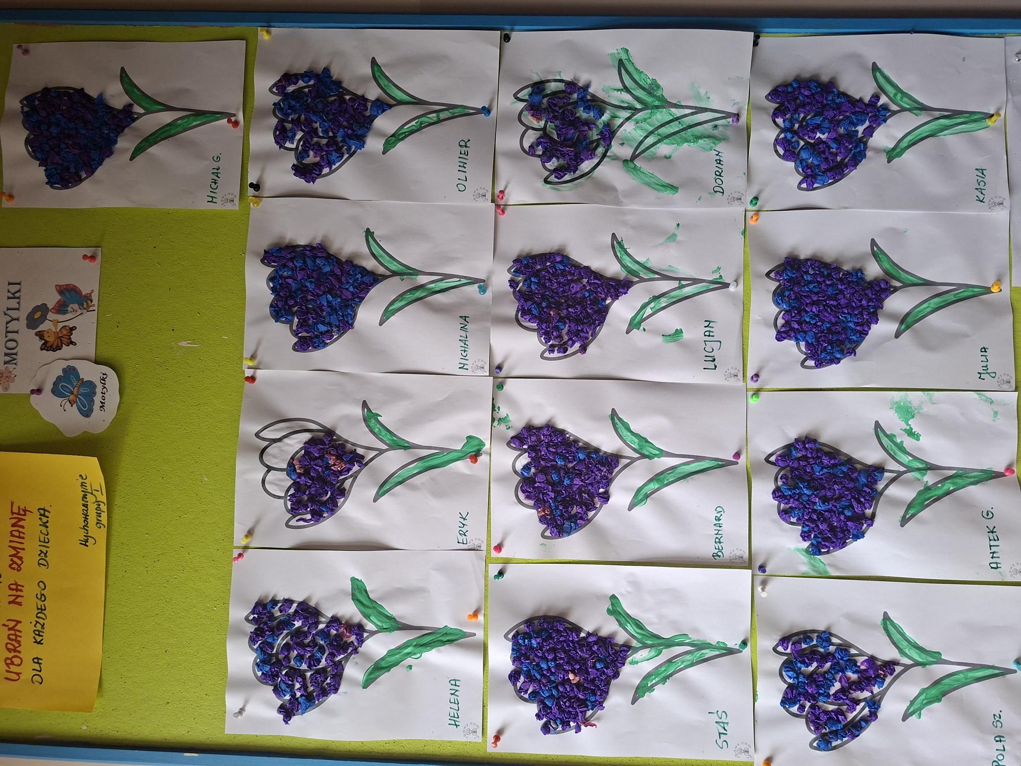 Przedszkolaki wyklejały dziś sylwetę krokusa kuleczkami z bibuły. Doskonale poradziły sobie z tym zadaniem.