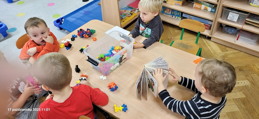 W czasie zabaw dowolnych przedszkolaki wspólnie miło spędzają czas :)